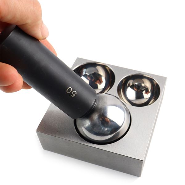 Highly polished dapping punch made of hardened tool steel.