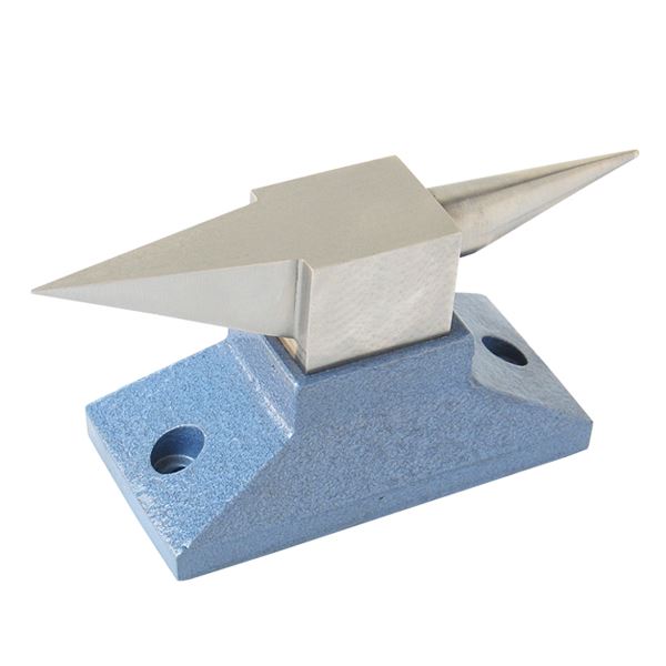 Forged, with polished sides, on a solid base. Can be mounted on a bench.