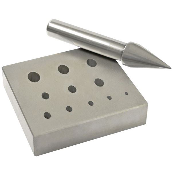 Bezel block made of hardened steel is a handy tool for making quick and easy bezel settings for facted stones.