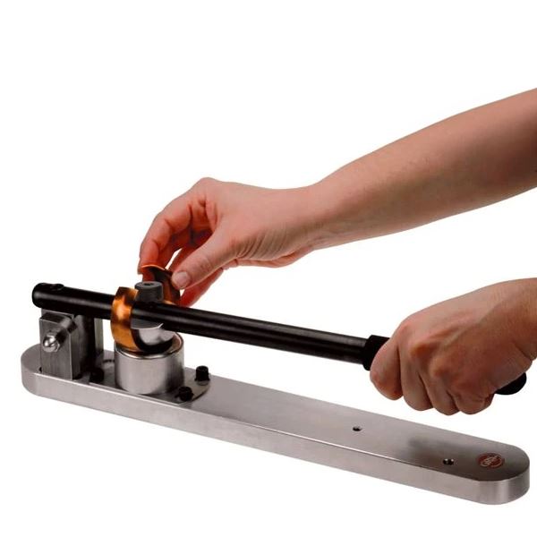 Form flat strips of metal to a perfect “C” shape after engraving the design. The die cup contains a soft alloy material that supports pressure from the die, but does not distort engraved work. The die cup material can be reformed by heating, when necessary.