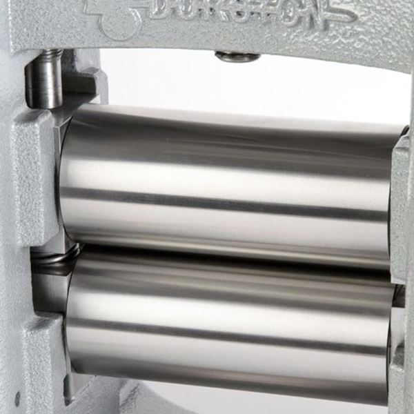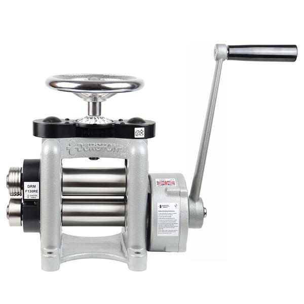 Durston’s mills are constructed from cast iron for optimal strength and rigidity with a reassuring weight to support a lifetime of use and give a better-rolled product. The rolls are specially induction hardened to 64 RC, the main barrel to a depth of 6 mm ensuring your rolls last a lifetime. This mill does not have side extensions (see the DRM F130 R E if you require them).