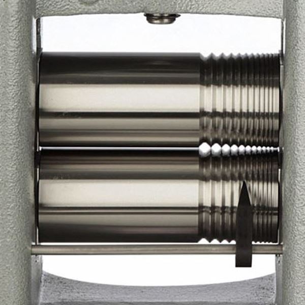 The mill is constructed from one piece of cast iron for maximum strength and rigidity. The roller length of 150mm, significantly wider than in most mills, gives extra space for a large flat rolling area, as well as 11 wire grooves. Each roller is specially induction hardened to 64 RC. The maximum thickness for flat rolling is 6mm, and the 11 square wire grooves range from 8mm to 1mm.