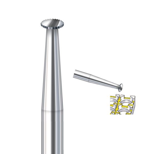 Carbide cutter with standard shaft, diameter 2.35 mm, thickness 0.4 mm. Also suitable for quick-change attachments.