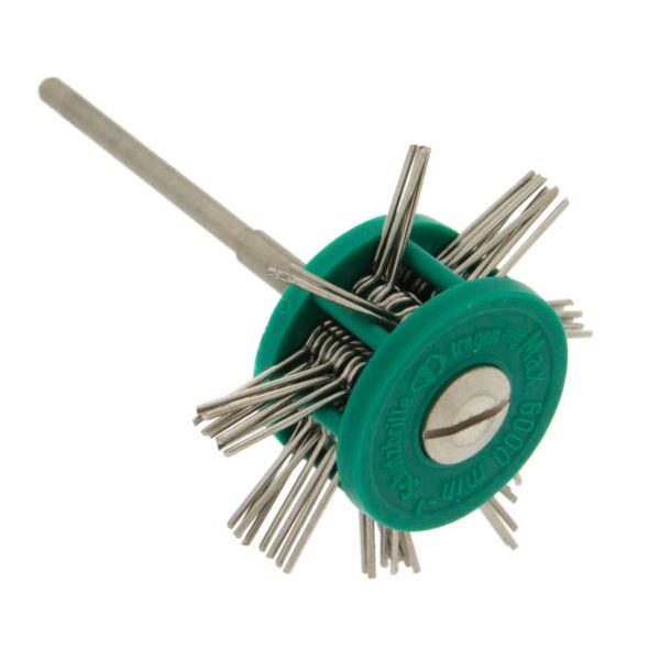 This steel satin finish brush is used to clean and deburr, to give surfaces a satin finish, to make motives on jewellery.