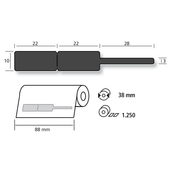 Black labels with loop made of polyethylene. Labels are very abrasion resistant. It is also resistant to ultrasonic and steam cleaning.