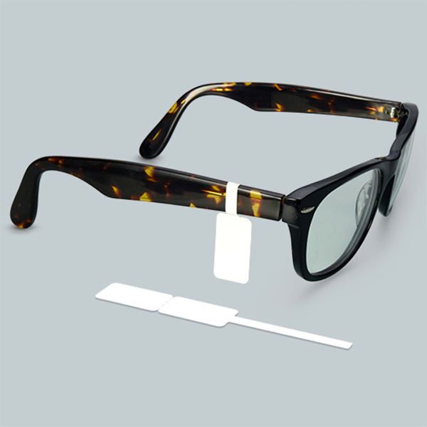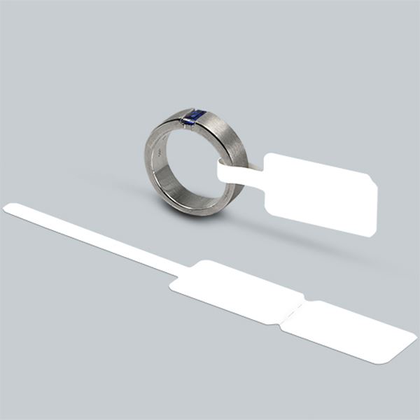 White glossy labels with loop made of polyethylene. Labels a...