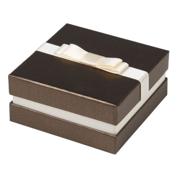 Stylish box finished with two colours of paper and elegant satin bow on the top. Inlay made of foam covered with velvet.