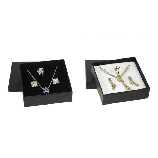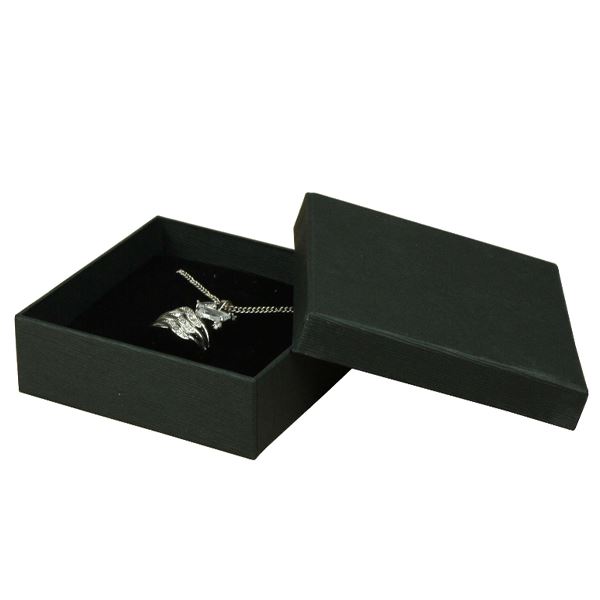 The plain cardboard box coated with lightly glossy paper. Foam inlay covered with velvet.