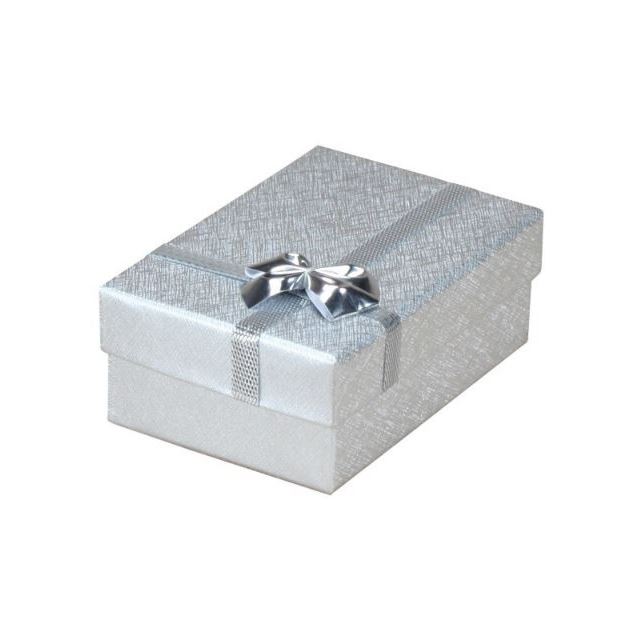 The affordable box made of lightly shiny paper with ribbon. Foam inlay covered with white velur.