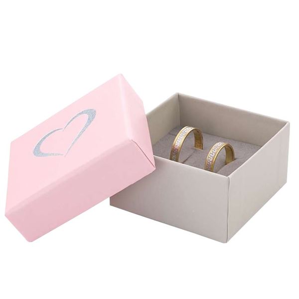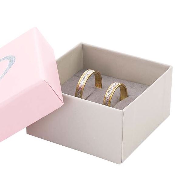 The two-color plain cardboard box coated with paper. Foam inlay covered with velvet. Decorative imprint in silver colour.