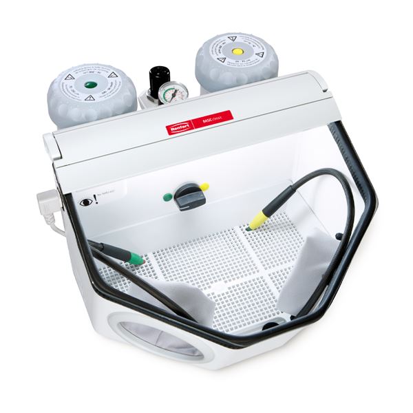 Compact, fine sandblasting unit with 1 or 2 blasting tanks.