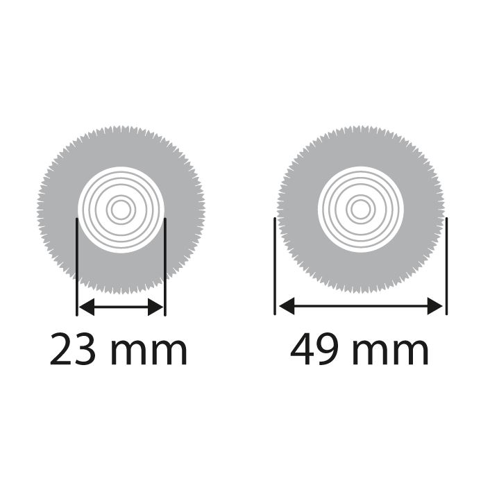 A multitude of brush materials are available. Select between variants with metal cores and metal hub or with metal core and plastic hub.