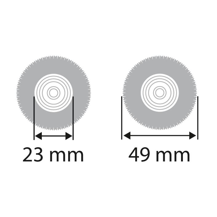 Slimline brusthes are suitable for pre- and post-polishing ofplastics and metals. The slim, single-row brushes are ideal forprocessing areas in plastic technology that are difficult to reach.