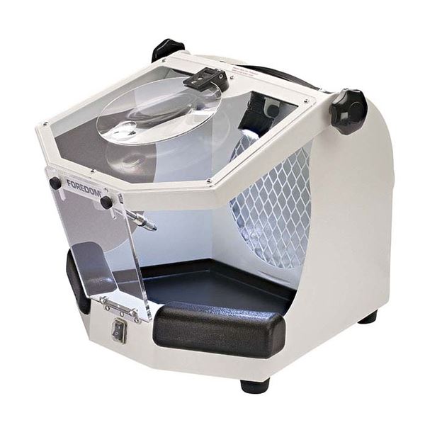 Double sided polisher with suction and lighting.