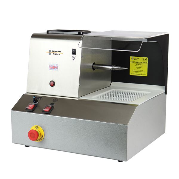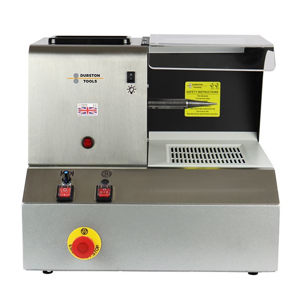 The fans are enclosed in specially sealed units for maximum performance. Fluorescent lighting is included on all models, and they are built from 1.5mm steel sheet rather than 1mm steel to create a more sturdy and robust construction and extend the life of your polisher. Filters can conveniently be removed from sides so do not take away valuable storage space on top of the machine, where you will find a rubber mat to store items. The front of the polishers also benefit from a shelf/armrest and has an RPM of 2,900. The single side spindle polishing machine is 460 mm by 300 mm by 410 mm and weighs in at 24 kilograms. Durston’s reputation for longevity and efficient design holds true with this range of polishers as well.