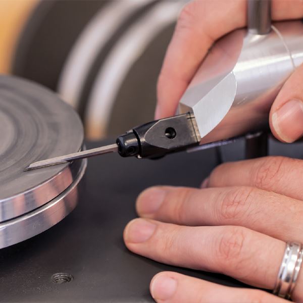 Professionals want to save time during the sharpening process to increase profitable moments spent at the bench. The design of the EasyGraver Sharpening Fixture is based on the standard geometries that we observed in use by hundreds of engraving artists and jewellers throughout the world over many years. The tool geometry is limited to the model, marked either 120° or 105° V-point gravers. For hand engravers and jewellers who currently use other geometries, the time it takes to adjust to these presets is outweighed by the benefits of accuracy and efficiency.