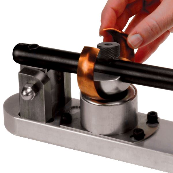 Form flat strips of metal to a perfect “C” shape after engraving the design. The die cup contains a soft alloy material that supports pressure from the die, but does not distort engraved work. The die cup material can be reformed by heating, when necessary.