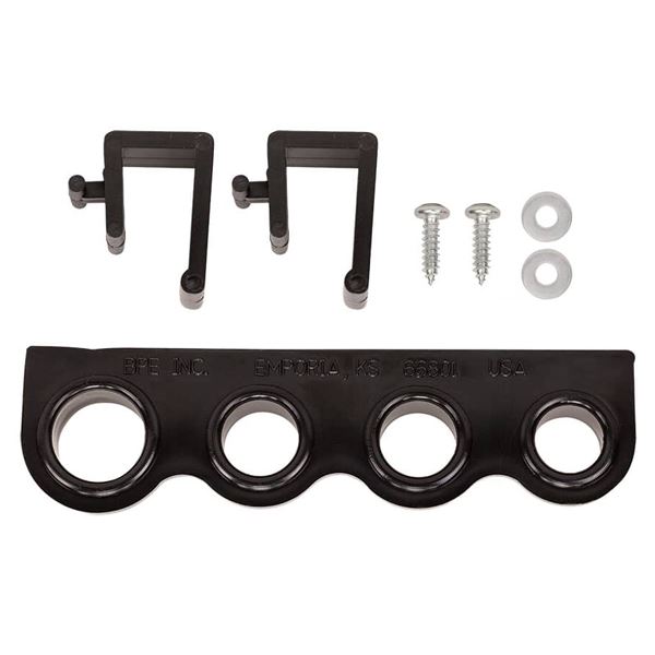 This organizer keeps handpieces within easy reach. The included clips that fit the side of some commercial benches. It can also be mounted to a flat surface with the included hardware.