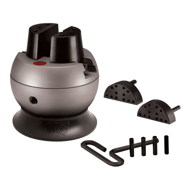 Control the rotational resistance with an internal rotational brake system. Machined from solid stainless steel with a satin finish and black jaws to reduce glare and eye strain.Package includes Standard Block and accessories (upper jaw plates, 4 pins, base, 1 plastic hex key, and wrench).