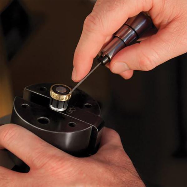 The assembly can be kept in place at various angles in a vice. The set screws which help to hold it in the vice can also be removed for greater freedom of movement. This assembly is intended for use with an existing ID ring holder (#004-735), but you can also use it to put together a full ID ring holder package with the new ID ring holder parts kit which can be purchased separately.