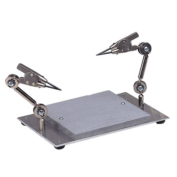 With unequalled flexibility, these Third-Hands can twist, rotate, and bend in all directions. GRS Soldering Stations combine Third-Hands with durable non-asbestos solder boards. These convenient packages help reduce bench clutter and speed up soldering jobs. Sits on a bench or fits BenchMate fixed mounting plate.