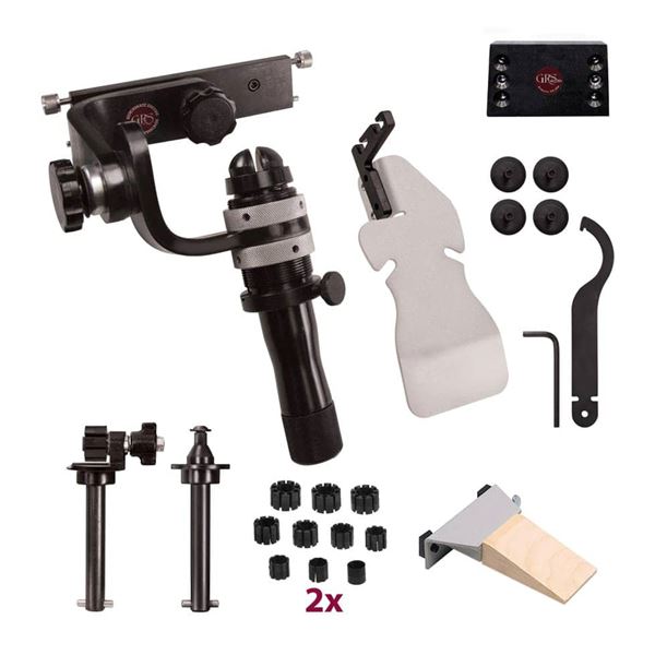 Includes: BenchMate Encore QCX, Fixed Mounting Plate, Horizontal I.D. Ring Holder, Vertical I.D. Ring Holder, Bench Pin Kit, and Encore QCX Accessory Pack with 4 Extra Plastic Jaws, 2 wrenches (4 mm Allen and large spanner), and 5 mounting screws.