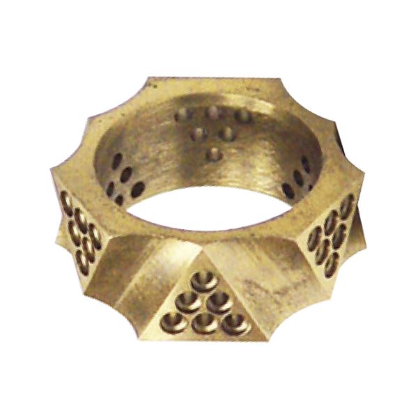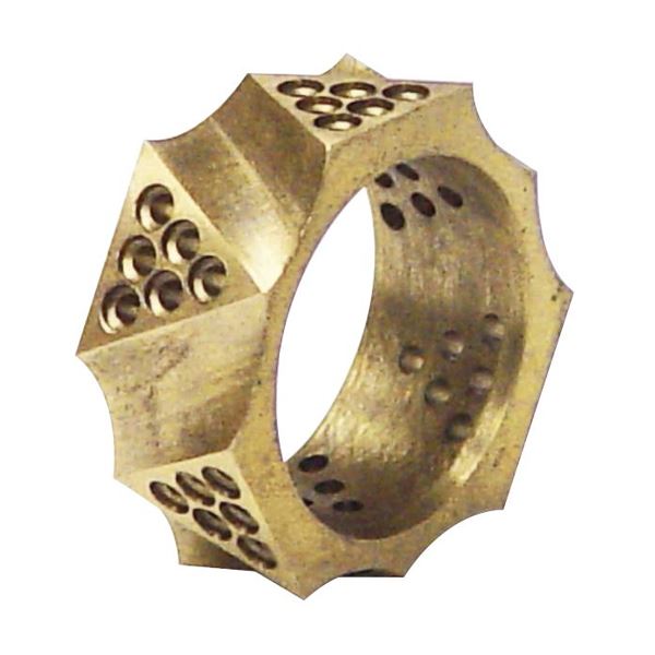 With 6 pre-drilled holes for 2.4 mm stones on each triangular face. Brass with 25 mm OD and 10 mm surface width.