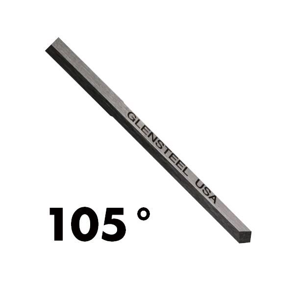 GRS offers a family of V-shaped gravers made from GlenSteel HSS. What is GlenSteelátm. GlenSteel is a special high-speed steel (HSS) made by GRS. It features outstanding toughness to resist breaking and chipping, even with a slender, fine geometry. It wears predictably to help eliminate catastrophic tool failures that damage work and confidence. GlenSteel is an excellent all-around choice for professionals and hobbyists when a tough graver is needed. GlenSteel is cobalt-free, eliminating the concerns of cobalt exposure during tool sharpening and use. Made with a precision V-Point geometry and a convenient 3/32” square shank. Available in 60, 75, 105, and 120 degree preshaped points. Simply sharpen the face, add a heel, and the GlenSteel V-Point Graver is ready to use.