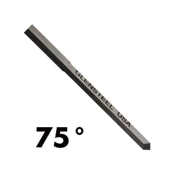 GRS offers a family of V-shaped gravers made from GlenSteel HSS. What is GlenSteelátm. GlenSteel is a special high-speed steel (HSS) made by GRS. It features outstanding toughness to resist breaking and chipping, even with a slender, fine geometry. It wears predictably to help eliminate catastrophic tool failures that damage work and confidence. GlenSteel is an excellent all-around choice for professionals and hobbyists when a tough graver is needed. GlenSteel is cobalt-free, eliminating the concerns of cobalt exposure during tool sharpening and use. Made with a precision V-Point geometry and a convenient 3/32” square shank. Available in 60, 75, 105, and 120 degree preshaped points. Simply sharpen the face, add a heel, and the GlenSteel V-Point Graver is ready to use.
