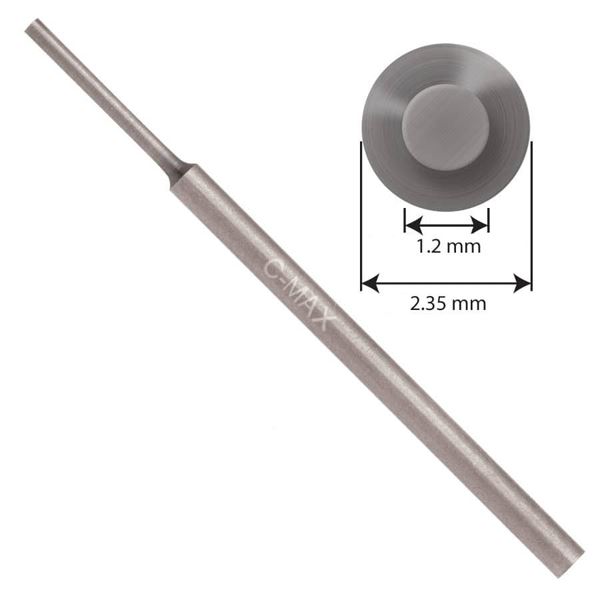 The C-Max carbide gravers with a 2.35-mm shaft are available with diameters rising in 0.2-mm gradations from 0.8 mm to 2.2 mm.