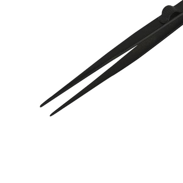 Nickel-plated diamond tweezer. Medium tip size.