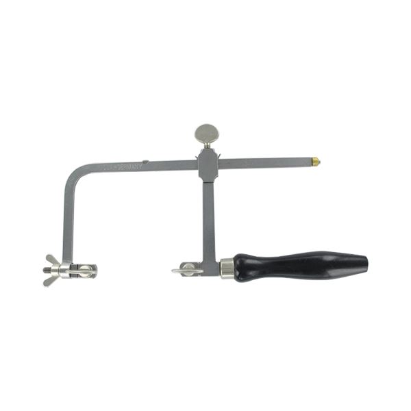 Saw frame is adjustable in length between 100-160mm, polished, with black wooden handle, 1 extra tightening screw.