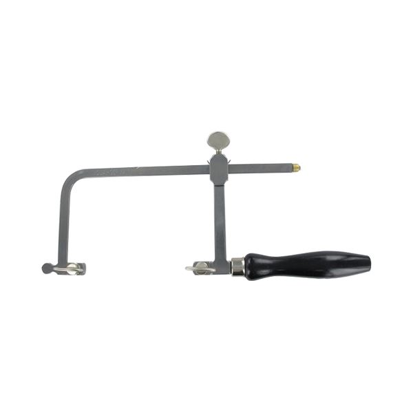Saw frame is adjustable in length between 100-160mm, polished, with black wooden handle.