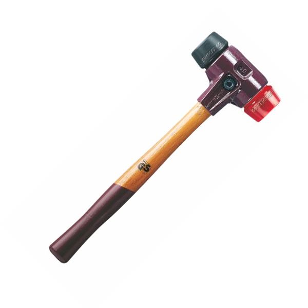 Simplex soft faced hammer with interchangeable plastic (red) or rubber (black) ends.