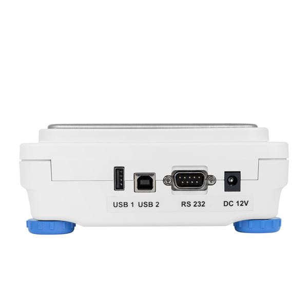 The balance features a stainless steel weighing pan, and a backlit LCD guaranteeing clear weighing result presentation.