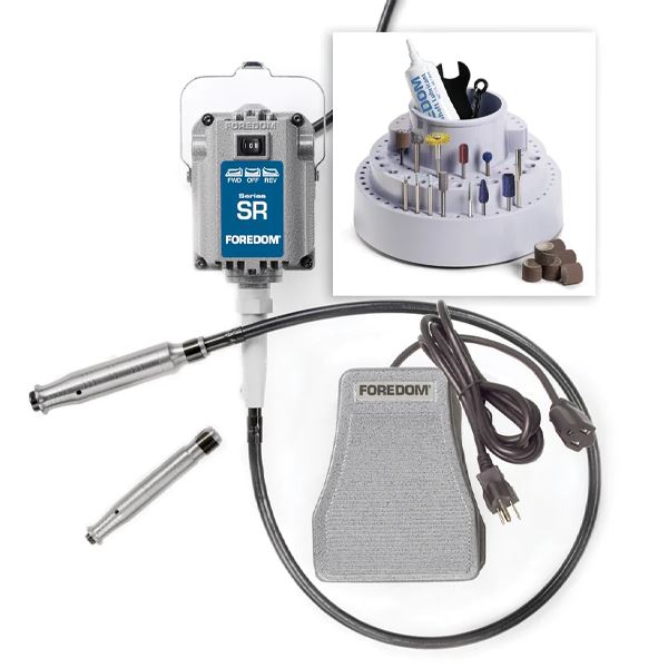 They contain just about everything you need to get to work- motor, speed control, handpiece and accessories. When purchased with an optional motor hanger, you are ready to go straight out of the box!