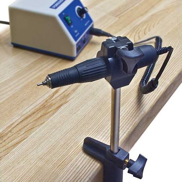 Allows you to bring the work piece to the tool. Includes handpiece clamp, bench clamp and rod.