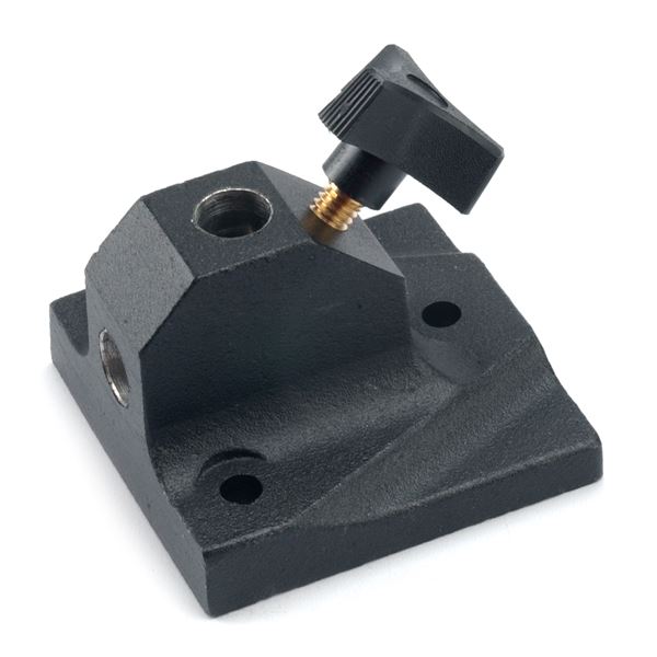 Base screws or bolts to side or top of bench for permanent mounting. Holds all motor hanger and handpiece holder rods.