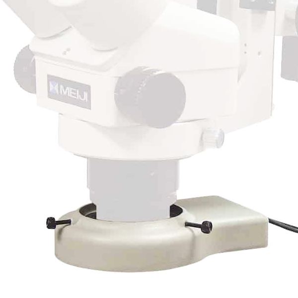 Extra-bright circular fluorescent bulb provides cool, glare-free illumination. This ring light fits Meiji model microscopes sold by GRS, as well as many others, with three adjustable threads.