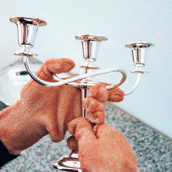 The gloves allow to hold firmly the item while cleaning and the hands stay dry. The cleaning is easy, gives instant results and does not cause any micro-scratches or marks on the metal. The silver and silver-plated items are cleaned and shiny again.