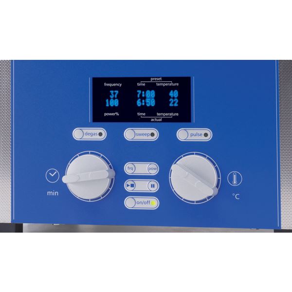 The product line comprises 6 machine sizes and multi-frequency technology with 37/80 kHz for different applications. The standard applications are performed at 37 kHz while finer cleaning processes with increased cleaning time run at the high frequency of 80 kHz. The high frequency is also hardly audible (even when the cover is open). Special functions such as Sweep, Pulse and Degas can be individually activated and complete the equipment.